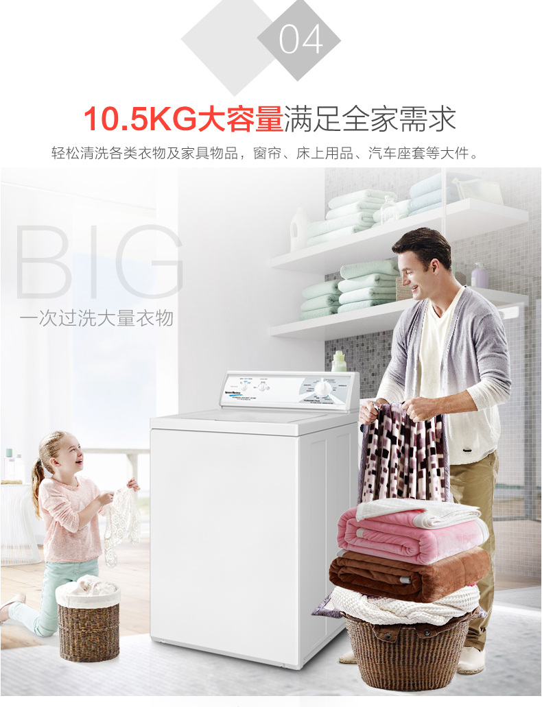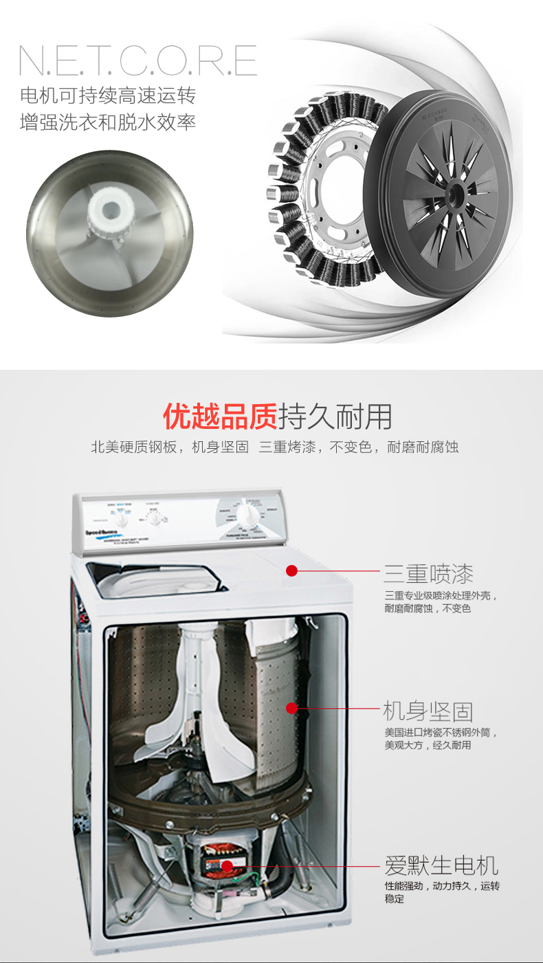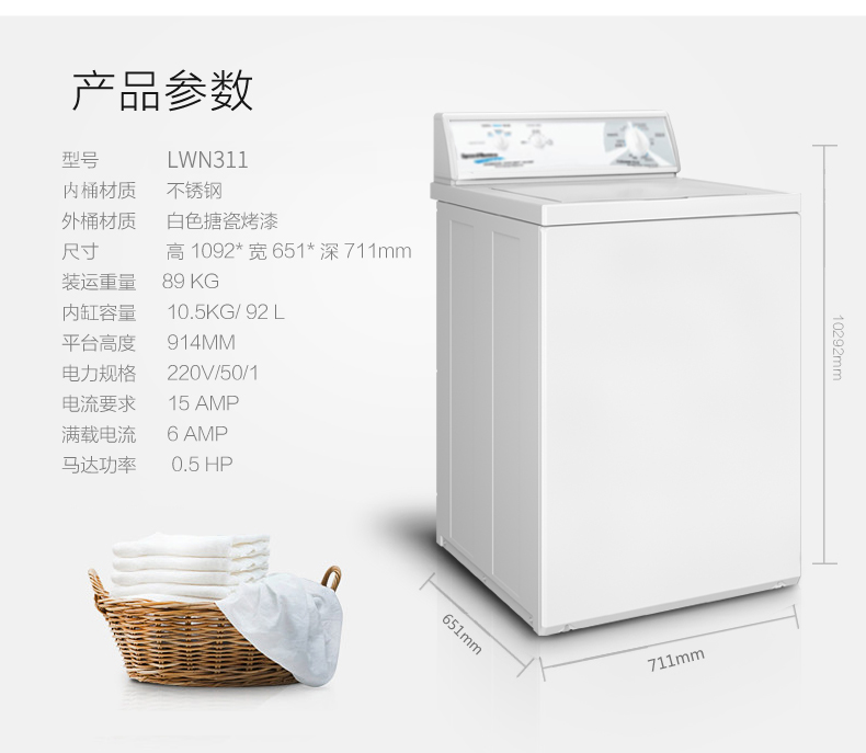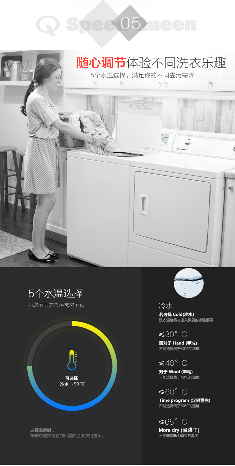 • 產(chǎn)品描述:大容量不銹鋼內(nèi)缸,確保衣物完好無(wú)損;先進(jìn)的懸掛系統(tǒng),降低發(fā)生不平衡負(fù)載的可能性;商用品質(zhì)的傳動(dòng)裝置可提供高的質(zhì)量和耐用性;多程序控制提供多種洗滌選項(xiàng),滿足您的洗衣需求