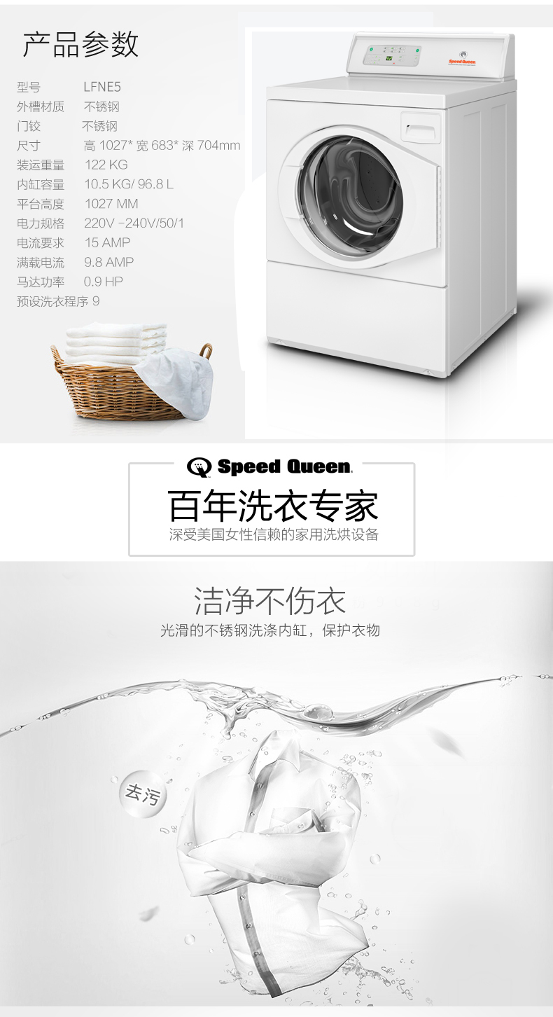 • 產(chǎn)品描述:大容量不銹鋼內(nèi)缸,確保衣物完好無損;商用品質(zhì)的傳動裝置可提供最高的質(zhì)量和耐用性;多程序控制提供多種洗滌選項,滿足您的洗衣需求