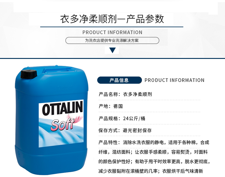 • 產(chǎn)品描述:強(qiáng)力除靜電,洗后衣物手感柔軟,更容易徹底甩干,節(jié)約烘干的時間與能耗,面料更容易熨燙平整,洗后衣物上帶有愉悅的氣味;適用與床上用品,內(nèi)衣,褲子等追求柔軟手感的各類服裝