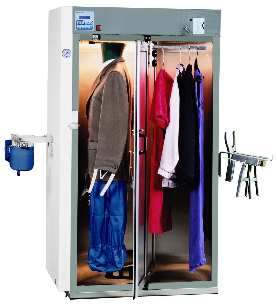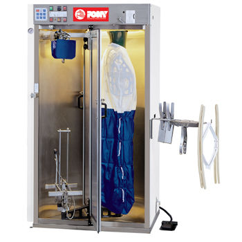 本文推薦產(chǎn)自意大利的上衣褲子二合一整燙柜,約能具有占地小、效率高、使用簡便和節(jié)能等優(yōu)點(diǎn),一臺(tái)機(jī)器可取代洗衣店/工廠常規(guī)配置的人像機(jī)和吹褲機(jī)二臺(tái)設(shè)備,只需一人操作即可輕松完成40~50件/小時(shí)。
