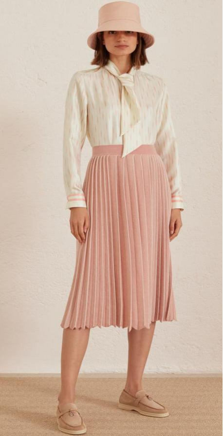 現(xiàn)代的百褶裙(外文名all-around pleated skirt),由裙首、裙身、裙腳等組成。皺褶多而密,裙擺長短各異,長的曳地,短的及膝。世界上很多國家女學(xué)生的校服也常見有百褶裙。